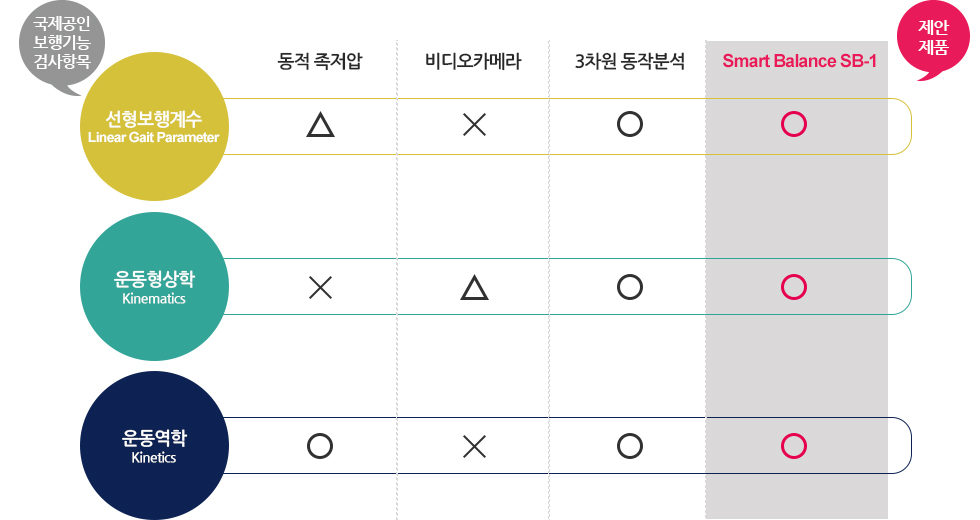- 임상 기준에 근거한 보행기능 검사 항목 비교표